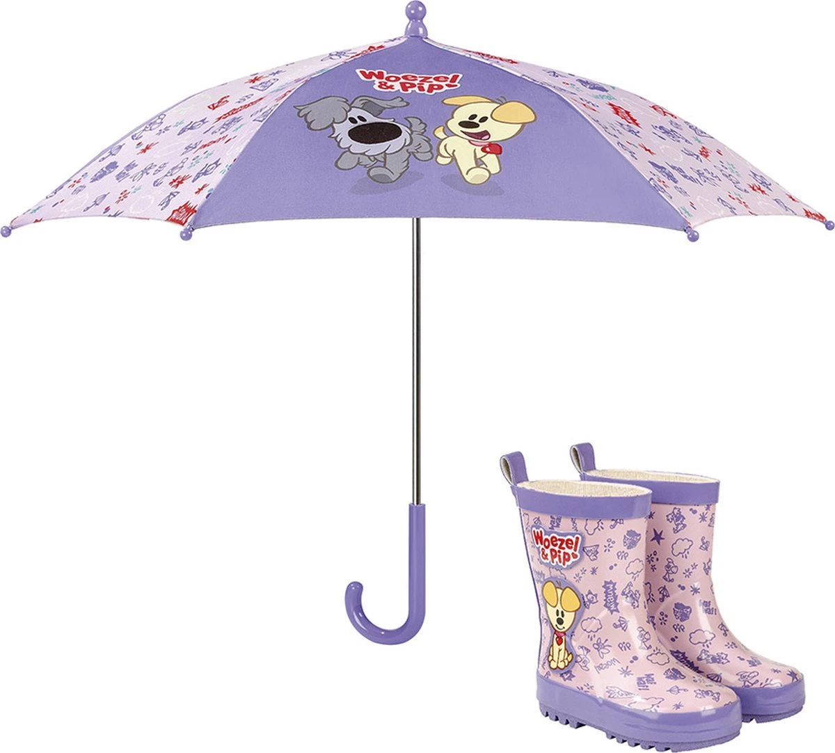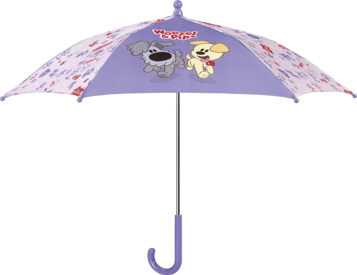 Een wandeling door de regen wordt een feestje met de Woezel & Pip Paraplu! De paraplu is paars van kleur en heeft leuke afbeeldingen van Woezel en Pip. Door het klittenbandje is de paraplu makkelijk te sluiten en op te bergen wanneer de regenbui voorbij is.