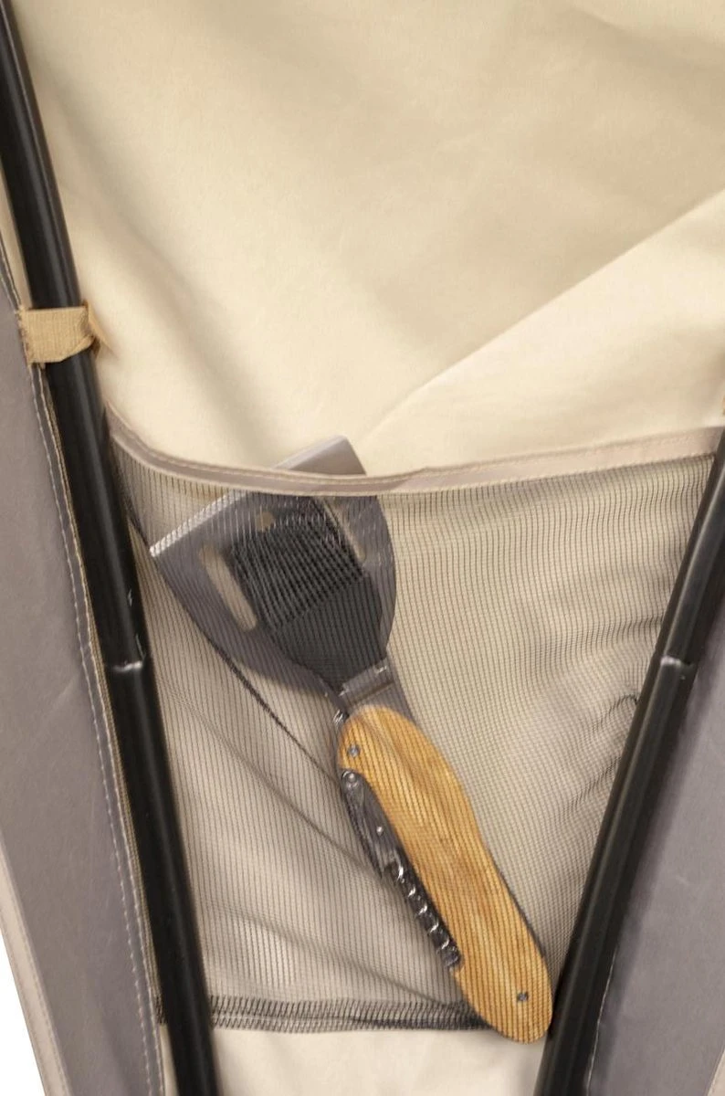 - Extra sterke stalen boogstokken met stabiele voetjes en doek van polyester met PU coating.