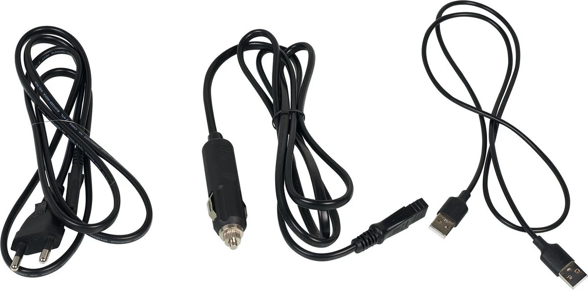 Koelbox Arendal, 12V DV stekker, 230V AC stekker, USB-stekker en handleiding