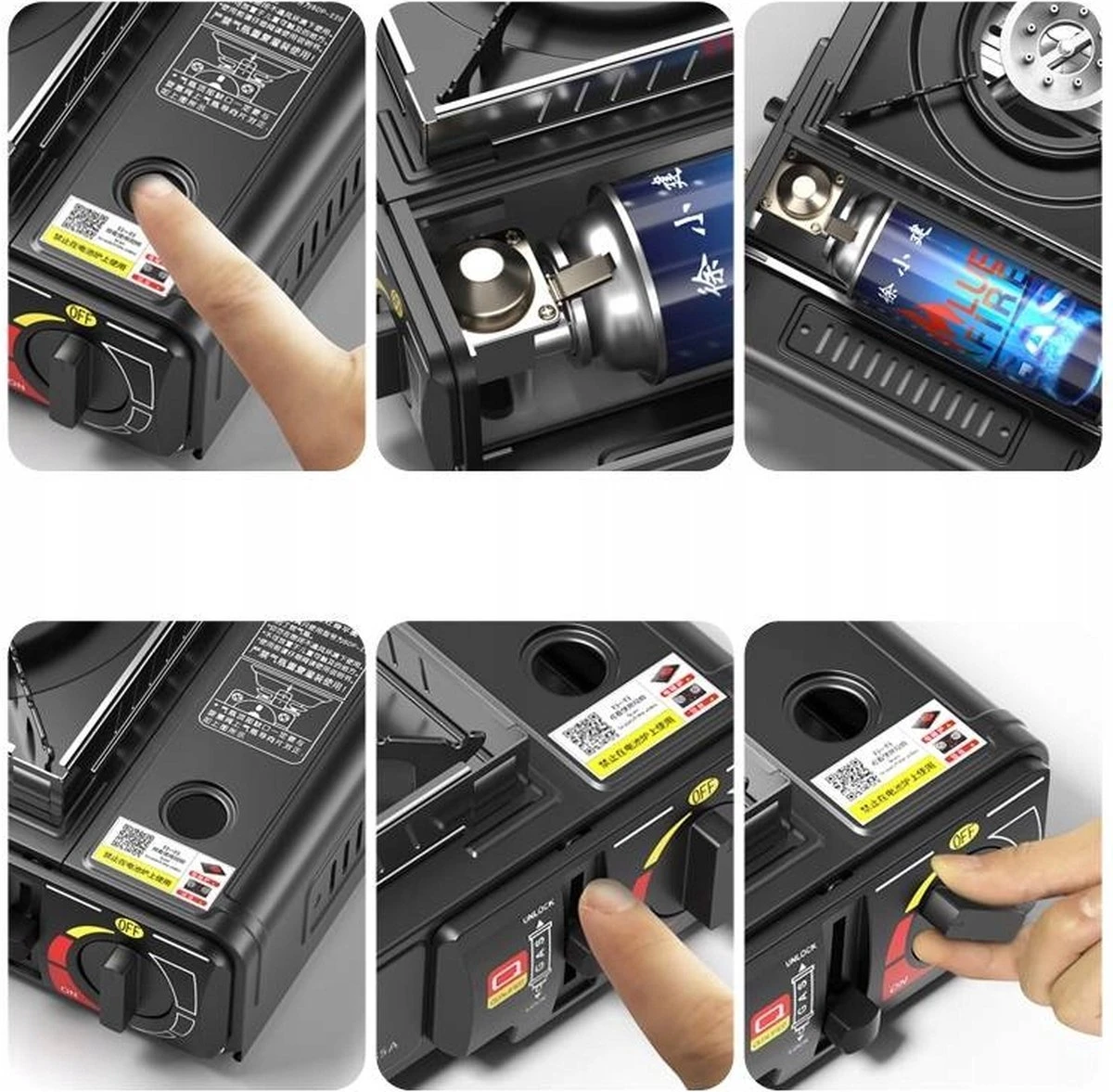 IBright Draagbare Camping Kooktoestel – Gasbrander – 1 Pits Gaspit – Elektrische Ontsteking – 2900 Watt – Met Koffer – Zwart