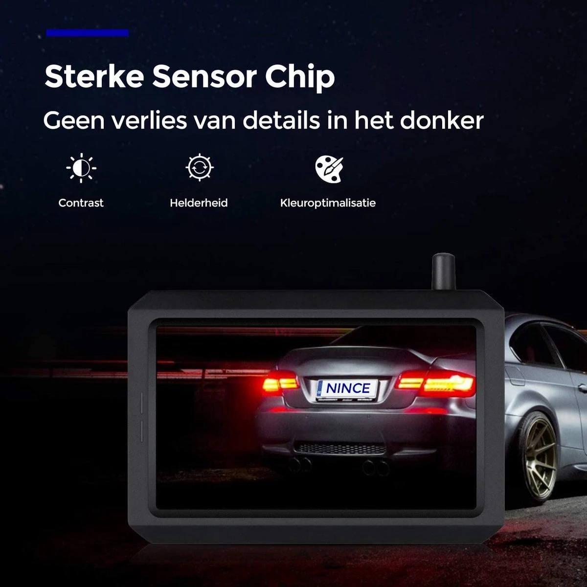 Ben jij opzoek naar een betrouwbare achteruitrijcamera die eenvoudig te installeren is? De Nince draadloze achteruitrijcamera zorgt ervoor dat jij in een handomdraai veilig de weg op kunt. Geen gedoe met allerlij draden, een eenvoudige installatie en een stabiele digitale verbinding tussen de camera en het scherm voor optimaal gebruik.